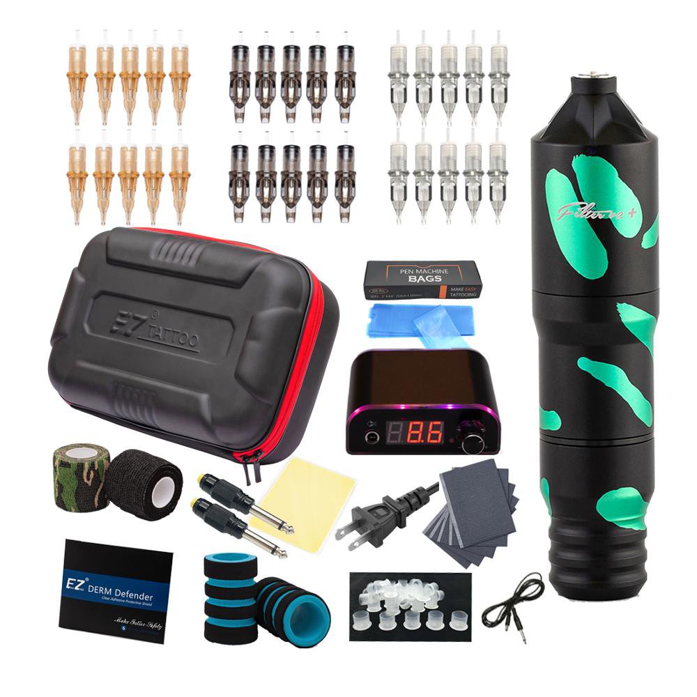 Kit Maquina Rotativa Hibrida Tatuagem Com Cartuchos